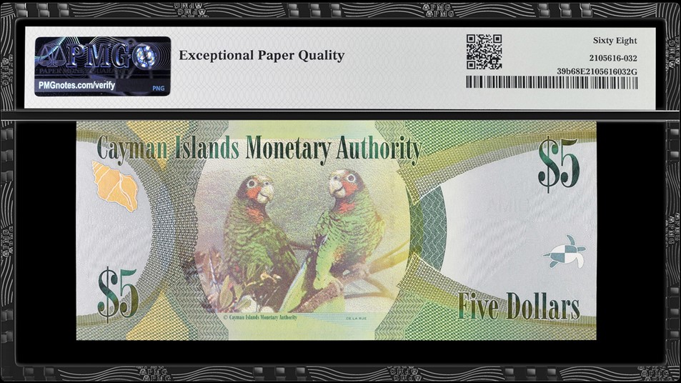 | Cayman Islands, Monetary Authority 2014 5 Dollars graded PMG 68 Superb Gem Uncirculated EPQClick images to enlarge. | |
