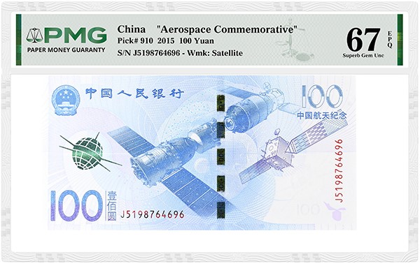 PMG Registry: This note is part of the most popular China category in the PMG Registry, People's Bank of China, People's Republic, Type Set, 1953-Date, Issued Notes, where Mikey Eyes' The Michael T. Ungaro People's Bank of China, People's Republic, 1953-Date, P860-Date, Type Set Collection #1 has a Pick# 910 in PMG 69 Superb Gem Uncirculated EPQ. The note is also part of the third-most-popular PMG Registry category for China, People's Bank of China, Commemorative Issues, 1999-Date, P902-Date, where Mikey Eyes' top-ranked Michael T. Ungaro PBC Commemorative Issues #1 uses the same note.