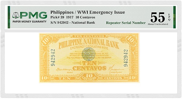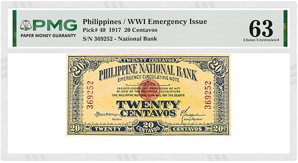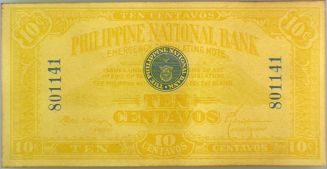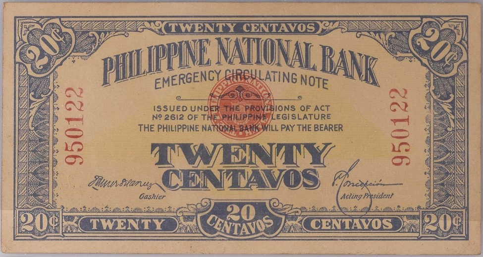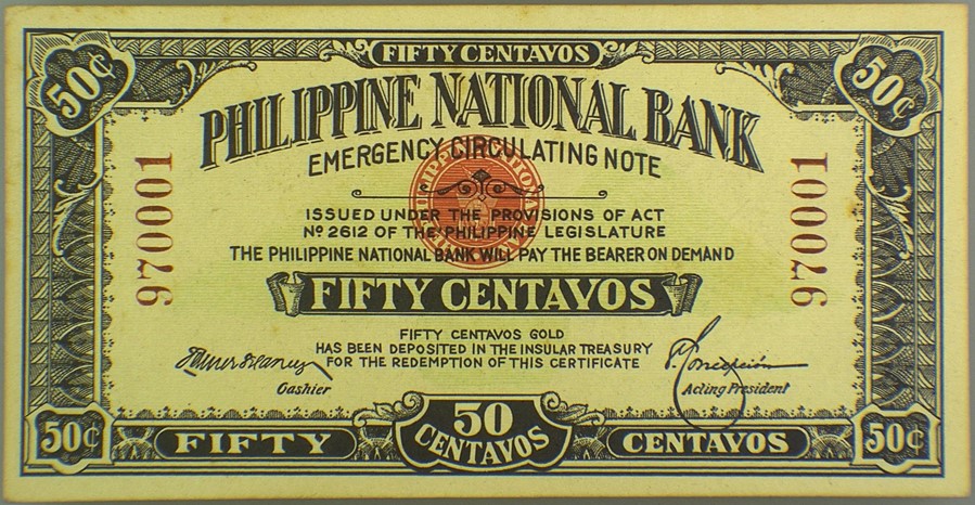 World War I affected numismatics around the world because precious metals were hoarded, including the silver used for Philippines coins. There, the new Philippine National Bank was given the power to print paper money, including Emergency Issue 10 Centavos, 20 Centavos and 50 Centavos (Pick# 39 to 41).