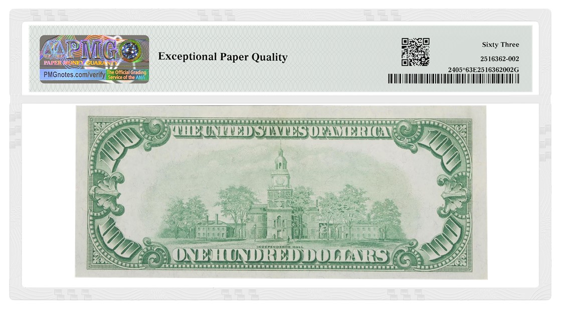 - a 1929 $100 Federal Reserve Bank Note (Chicago) graded PMG 65 Gem Uncirculated EPQ (lot 7018), with an estimate of $50,000 to $75,000