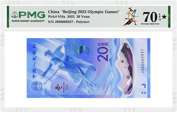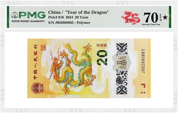 Among the top highlights are several notes graded PMG 70★ Gem Uncirculated EPQ, the pinnacle of the PMG Grading Scale. Two timely commemoratives stand out: a China 2024 20 Yuan -Year of the Dragon and a China 2022 20 Yuan - Beijing 2022 Olympic Games. The 2026 Olympic Games and Chinese New Year celebrations converged this year in mid-February.