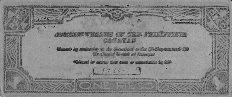 Back Type: New plate; 1 at upper corners, ONE PESO at bottom.