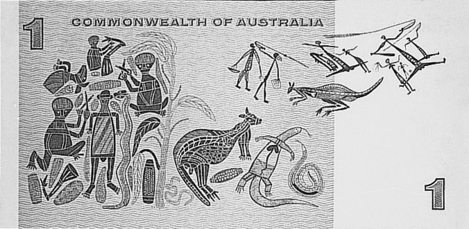 Back Type: Stylized aboriginal figures and animals.