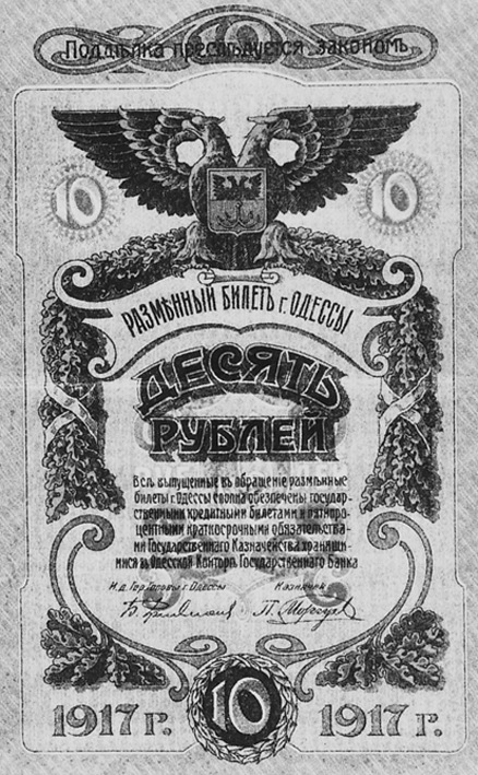 1917; 1918 РАЗЬЂΗΗbIИЙ БИЛΗТБ Г. ΟдΗССbI Exchange Notes of Odessa Area Issue 10 Rubles