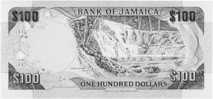 Back Type: Dunn's River Falls, St. Ann, at right. More silver waves added to both $100 and across bottom.