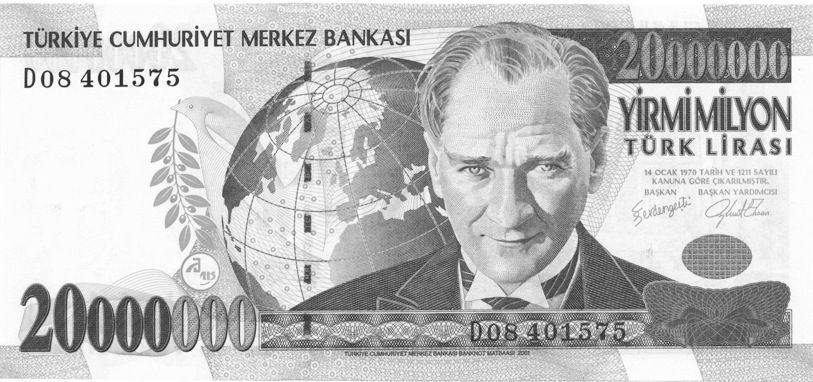 Law Ocak 14 (Jan. 26), 1970; 1998-2002 ND Issue 20,000,000 Lira