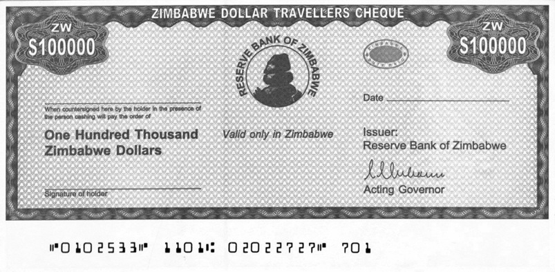 2003 ND Emergency Travellers' Checks 100,000 Dollars